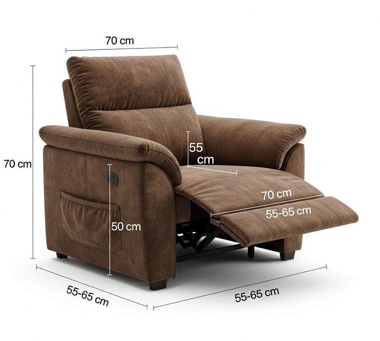 Dica de tecido: veludo, bouclé e microfibra de alta densidade, com acionamento com alavanca para facilitar a inclinação. ou até mesmo controle por acionamento eletrõnico, e algumas vem com porta copos nos braços e compartimento para colocar o controle remoto.