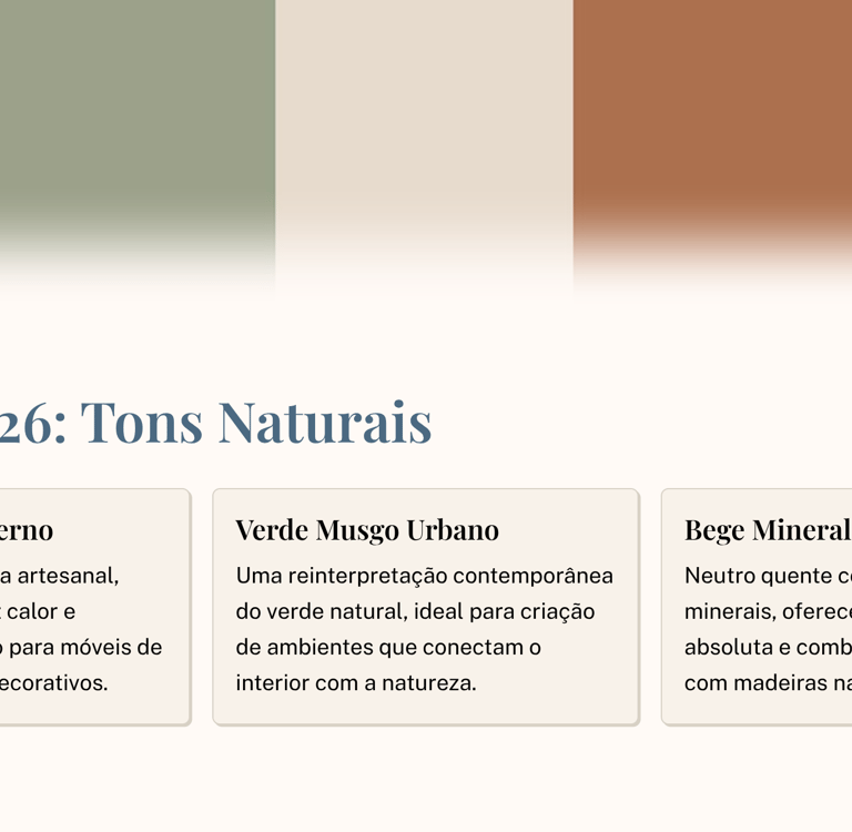 As tendências de móveis 2026 trazem uma fusão perfeita entre sofisticação, sustentabilidade e inovação, com paletas de cores que refletem nossa busca por equilíbrio entre o natural e o contemporâneo.